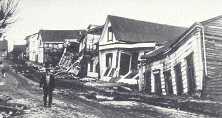 Figura 3 _ Asentamientos debidos a la subsidencia del suelo, Valdivia 1960.