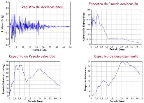 Los edificios con diferentes periodos, responden de manera distinta al mismo terremoto, así como cualquier edificio actuará de manera distinta durante terremotos distintos. Por lo que para propósitos de diseño, es necesario representar el rango de respuestas del edificio a los movimientos sísmicos de diferente contenido frecuencial. Esta representación es llamada espectro de respuesta del sitio, y se obtiene graficando los máximos valores de respuesta de la aceleración, velocidad y desplazamiento en función del periodo.