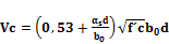 En las losas, placas y zapatas de fundación con acero de refuerzo por corte, la resistencia del concreto al corte, Vc, no excederá de y la resistencia teórica al corte Vn, no será mayor que .