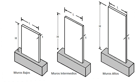 Según la relación entre la altura hW y el ancho LW, los muros pueden clasificarse en: