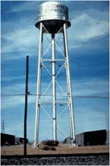4 _ Antes y después de tanque de agua que colapso debido a la esbeltez de sus miembros y la gran masa superior.