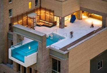 5 _ Piscina con voladizo de 2,5m.,Nivel 15, Hotel Elan, Dallas, Texas.