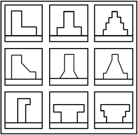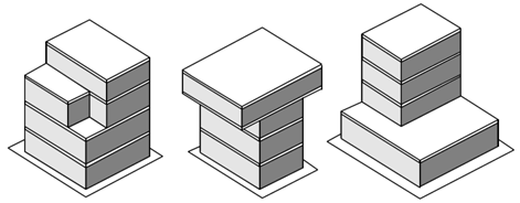 En la figura 1 se muestran formas de edificios que se pueden considerar que tienen una distribución regular en altura. Nótese que la transición de masa se hace de manera uniforme.