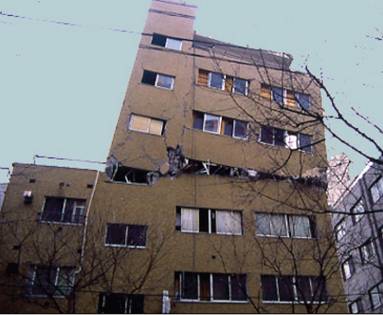 12_ Edificio con irregularidad vertical luego del terremoto de Kobe, Japón, 1995.