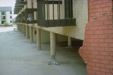 Figura 3_ Articulaciones plásticas formadas en la bases de las columnas luego de un evento sísmico.