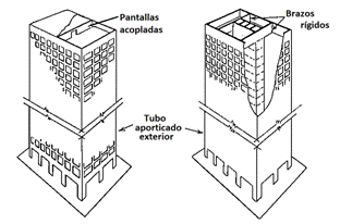 Cuando se superan los 80 pisos de altura, el sistema de tubo en tubo puede que ya no sea suficiente para resistir las solicitaciones por cargas laterales, por lo que la solución aplicada por los ingenieros estructurales es la de conectar el gran tubo formado en la periferia de la planta mediante muros internos que actúan como diafragmas y permiten que el comportamiento del sistema se asemeje al de un tubo macizo, por lo que el comportamiento de la edificación será netamente flexional, como el de un muro en voladizo.