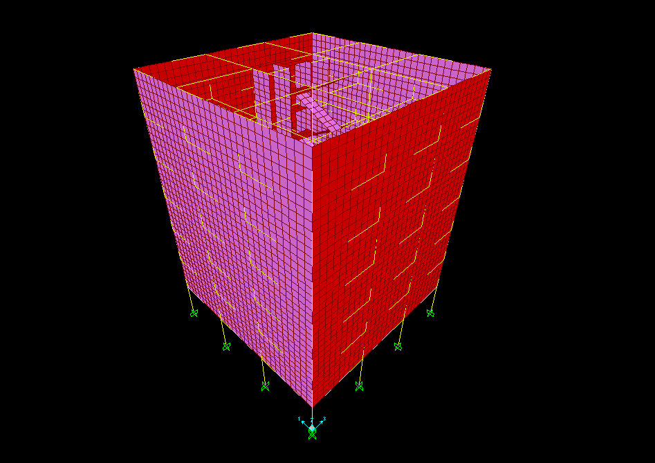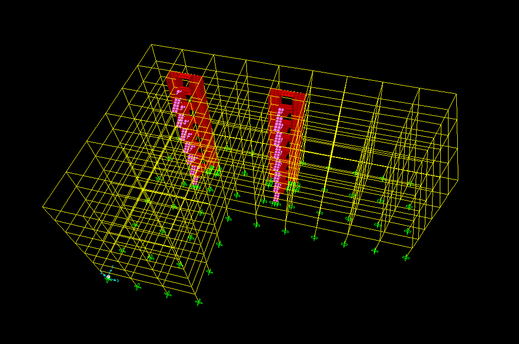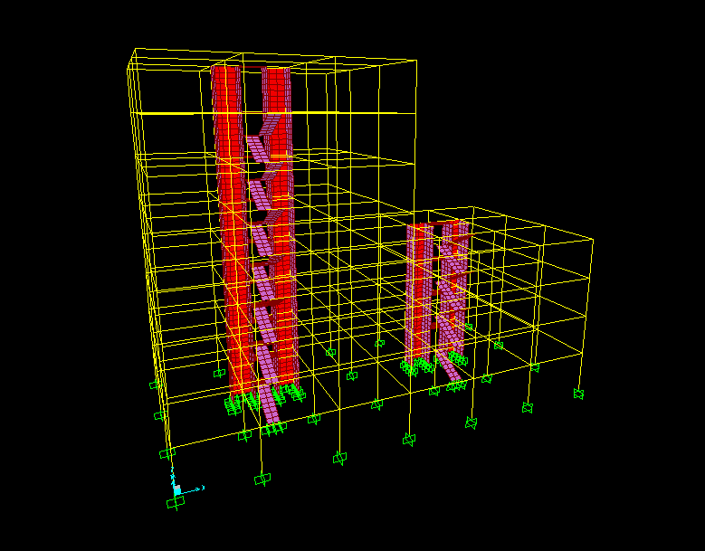 Esta estructura de forma irregular en planta presenta mayores desplazamientos en las alas y se concentran las solicitaciones en el centro.