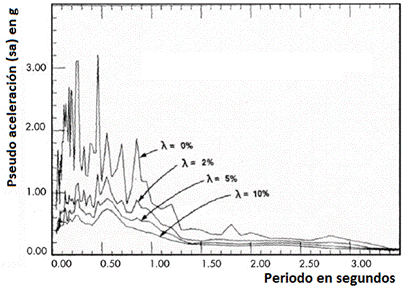 La importancia que posee el amortiguamiento para los ingenieros, es que las aceleraciones que genera el movimiento del suelo pueden ser muy grandes si no existe amortiguamiento alguno. Generalmente los espectros de respuesta muestran valores de aceleración para amortiguamientos de 0, 2, 5 y 10%. Un valor de 0% es usado en tanques de agua soportados por una sola columna, generalmente para una edificación se usa un valor de 5%. En la figura 1 se puede apreciar la disminución de la aceleración en un tiempo determinado según los valores del amortiguamiento.